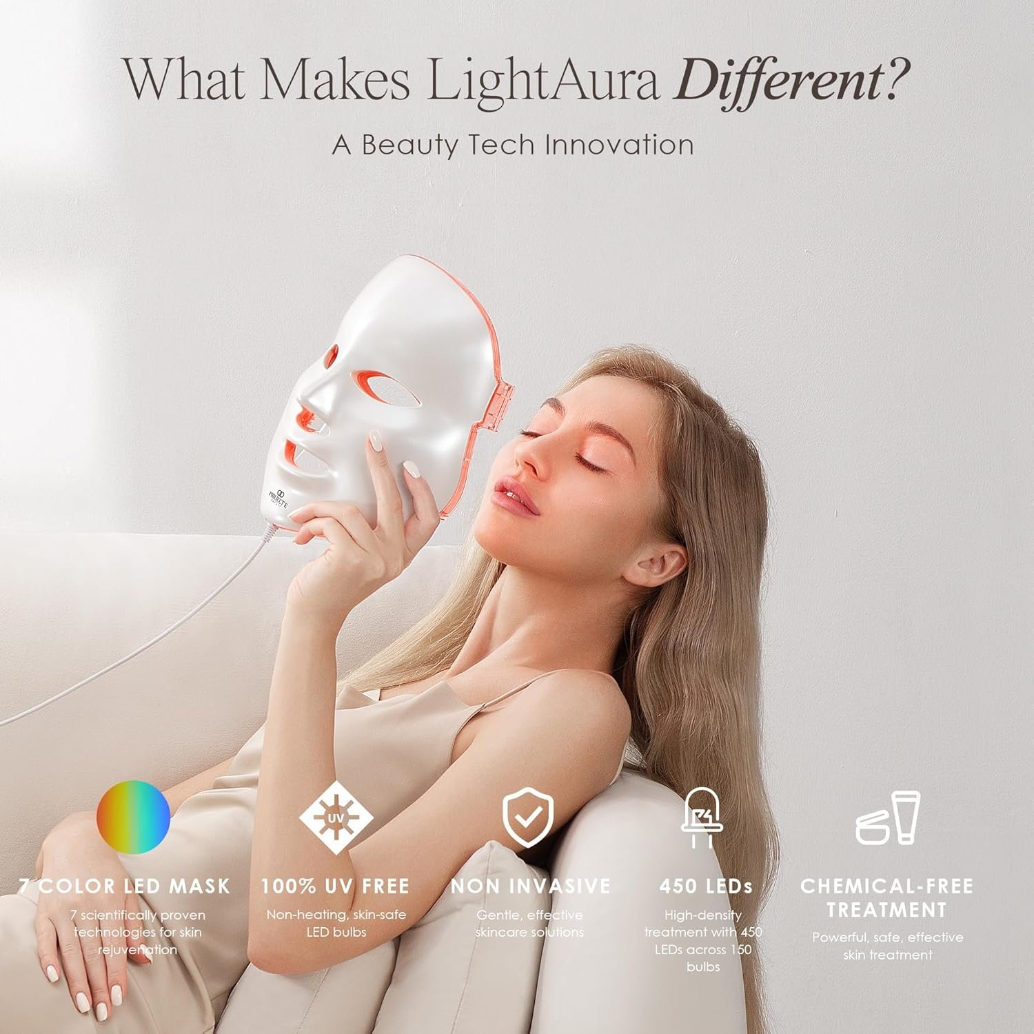 • ✨ INDOLORE ET NON-INVASIVE – La luminothérapie par LED est un traitement cosmétique qui peut être pratiqué pendant la pause déjeuner et qui ne nécessite pas de temps de récupération. L’ensemble du traitement est pratiquement indolore, il suffit de s’asseoir et de se détendre. Sans coupure, ni piqûre, ni sensation désagréable, les séances de rajeunissement de la peau sont toujours confortables.